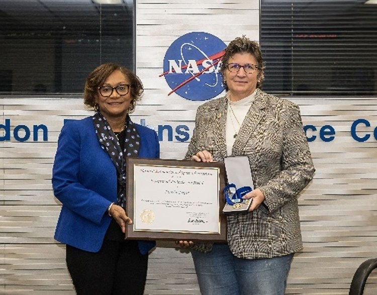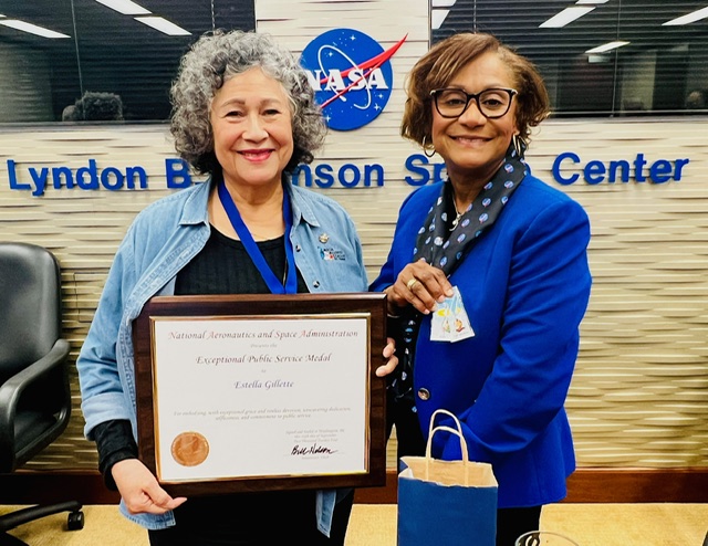 On February 18, Johnson Space Center Director Vanessa Wyche awarded the agency’s Exceptional Public Service Medal to Belinda Gay, Marsha Cooper, and Dr. Estella Hernández Gillette.