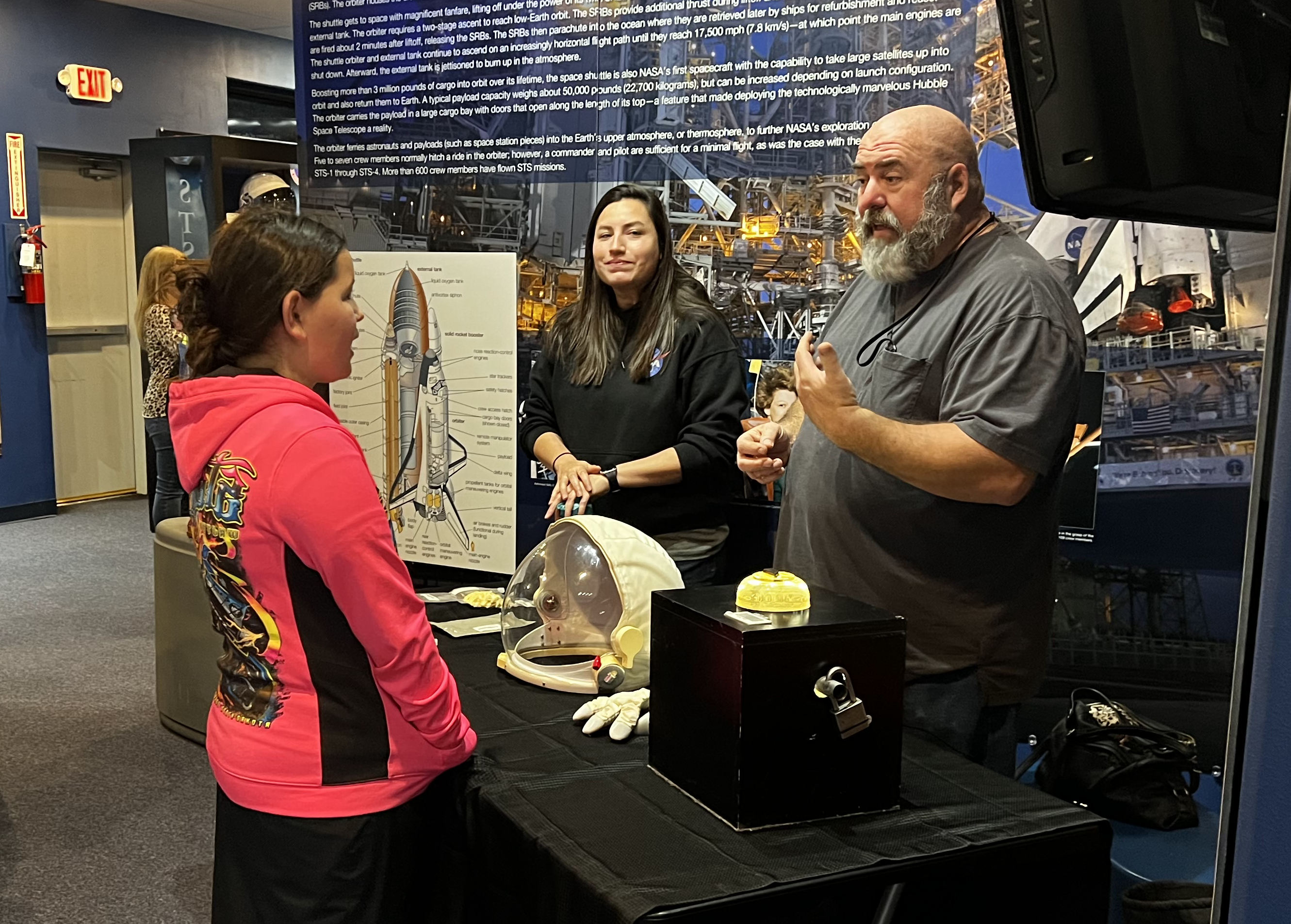 The museum’s main gallery features displays and artifacts documenting Space Shuttle Columbia’s 28 missions.
